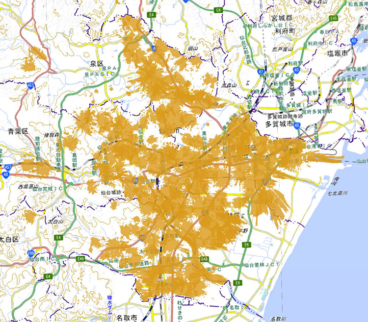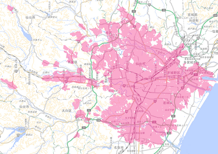 仙台市の一部と広域でご利用いただける2種類のサービスを提供しています。エリアマップをご確認の上、お申し込みください。※7 ※8